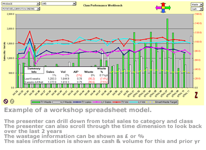 In addition the model enables the presenter to drill down from total business to category and then class within that category and by geographical area.